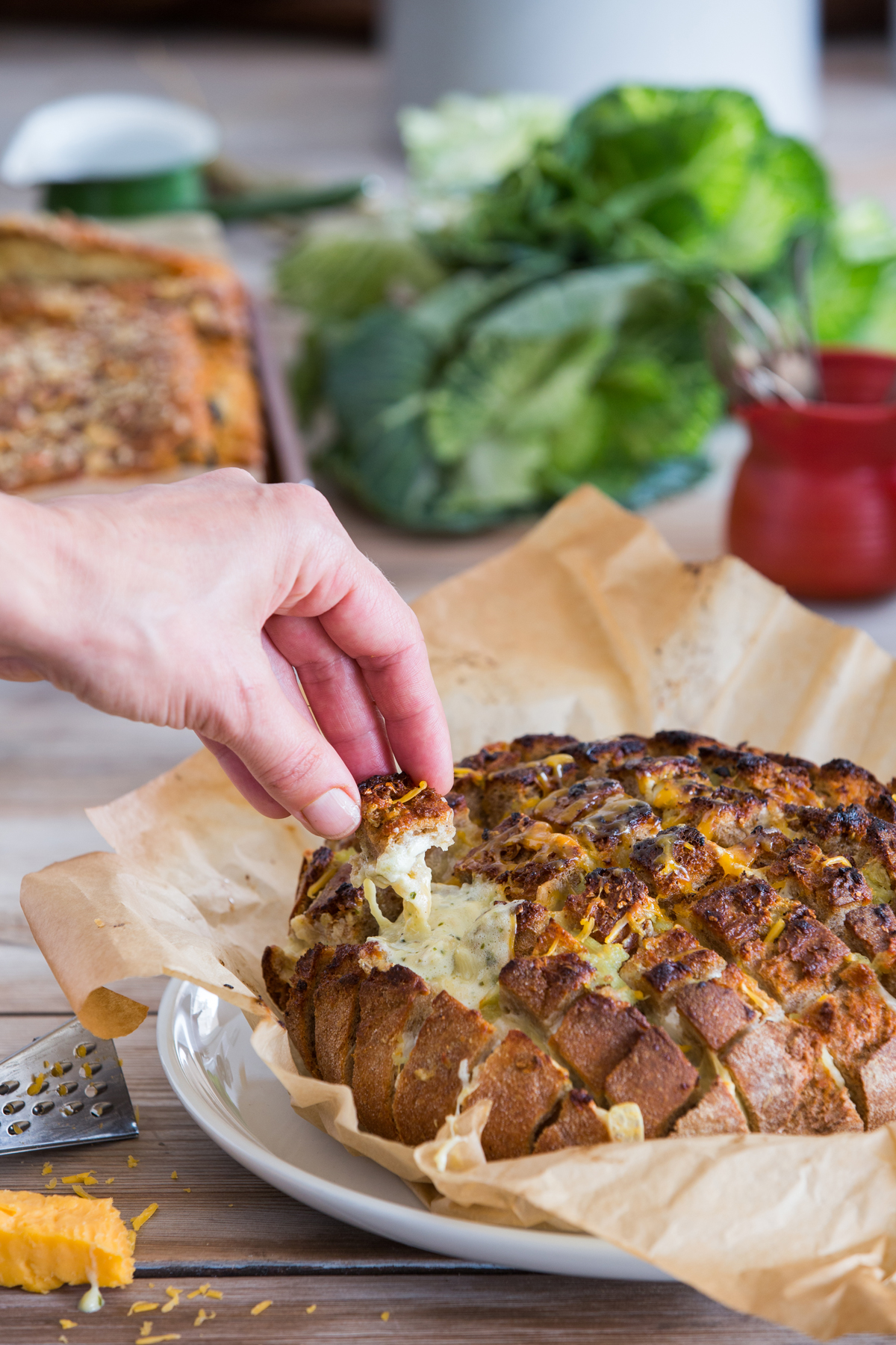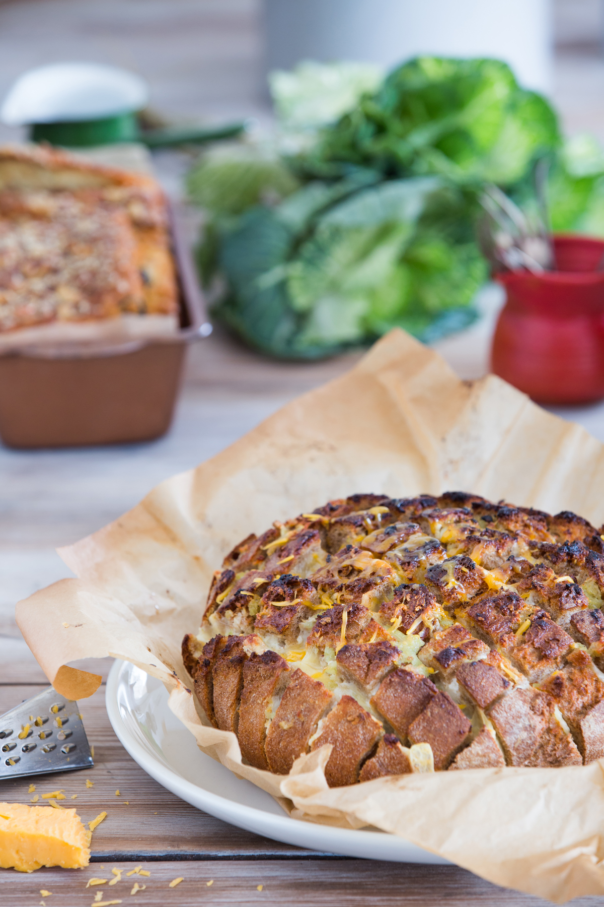 לחם שלם אפוי ממולא צ'דר, שום ועשבי תיבול